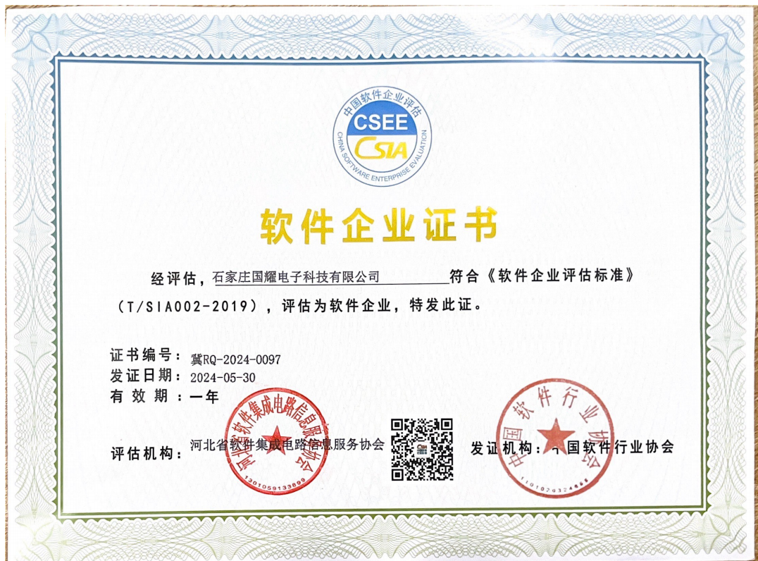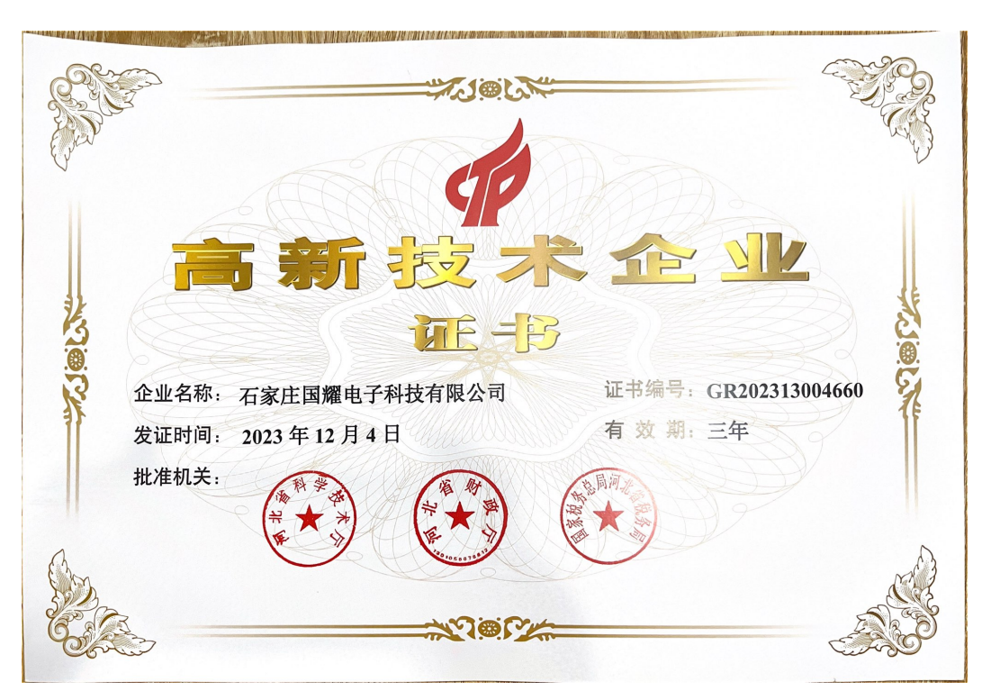 石家莊國(guó)耀電子科技有限公司成立于1998年,注冊(cè)資本1000萬(wàn)元,位于石家莊市高新技術(shù)產(chǎn)業(yè)開(kāi)發(fā)區(qū),是國(guó)家高新技術(shù)企業(yè)和軟件企業(yè)。
